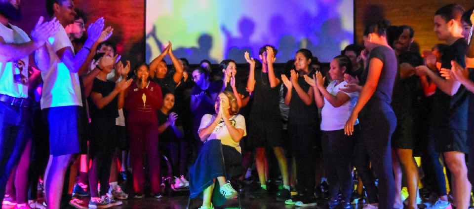 No ato IV, após o ministério de dança Plenitude apresentar “Raridade”, música de Anderson Freire, a professora Shirley Regina subiu ao palco para oferecer palavras à homenageada. Em seguida, a mestre de cerimônias convidou Norma Tinoco a entrar em cena. Ao som de “Muda Tudo”, os alunos formaram um círculo ao redor da professora, cantando o refrão em coro.